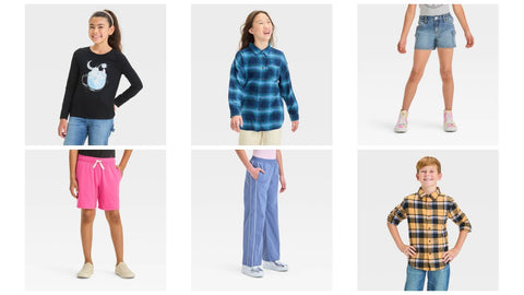 ⢠Boysā knit pull-on shorts ⢠Toddler woven pull-on pants/joggers ⢠Girlsā twill wide-leg cargos -
